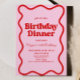 Pink Red Retro Wavy Border Birthday Dinner Party Invitation