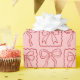 This wrapping paper features a grid of pink and red ribbon bows.