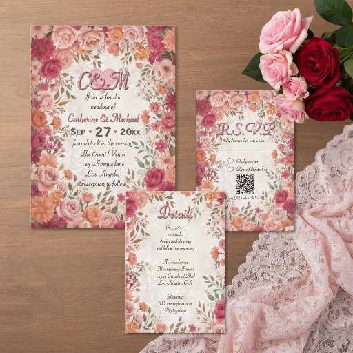 Thoughtfully designed with space for confirmations and a QR option, it blends timeless charm with modern convenience. Perfect for a blush pink burgandy cottagecore wedding or romantic wildflower old world wedding celebration, this card keeps your planning organized in style. Personalize it and make every detail of your day feel beautifully connected.
