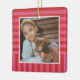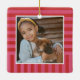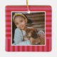 Pink red stripe cute simple one photo Christmas Ceramic Ornament