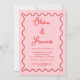 Pink Red Vintage Bow Wavy Frame Wedding Invitation