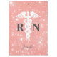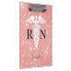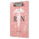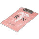 Pink Registered Nurse RN Script Personalised Clipboard has a modern stylish design with rose gold blush pink and white speckled background and a white medical symbol on the centre. The text is "RN" and your name is personalised with in trendy hand lettered script. Great for registered nurses and nursing students.