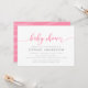Stylish Baby Shower Invitation featuring the words "Baby Shower" in a relax cursive script in pink against a white background. Card has a pink back side featuring overlapping lines.