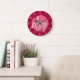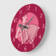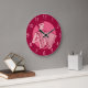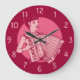 This clock has a retro pink illustration of a glamourous lady playing the accordion.