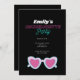 Throw an epic bachelorette party for the bride-to-be! This flirty neon pink, blue and black design featuring retro sunglasses is perfect for any bachelorette party or weekend! Customise with more details and the itinerary or schedule of events on the back. This editable and printable template is available as a digital download.