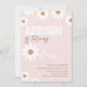 Pink Retro Girls Daisy 1st Birthday Invitation