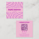 Pink Retro Groovy Wavy Checkered with QR Code Square Business Card