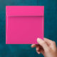 Candy pink pre-addressed envelopes.