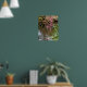 Dress up a wall with this poster print that features a photographic image of pink Rhododendron blooms reflecting on the surface of a pond along with mallard duck. Customize your poster size as desired along with other options.