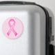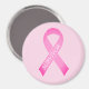 Pink ribbon breast cancer awareness custom round fridge magnet. Personalised logo design. Add your own support text, warrior quote or survivor name.