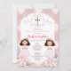 Pink Ribbon Crest Twins Girl First Holy Communion Invitation