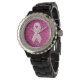 Beautiful rhinestone black enamel watch featuring Pink Ribbon & Faux Glitter design for breast cancer awareness