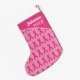 Lovely personalised stocking for the breast cancer survivor or one for every member of her supportive family. Breast cancer awareness pink ribbon pattern over a lighter pink background and typography which says "I Believe in Miracles".