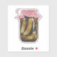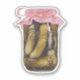 This charming pickle jar design features a vintage-style glass jar adorned with a delicate pink ribbon.