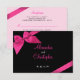 Hot pink ribbon on black background. Fully customisable RSVP card to use for weddings, parties, bridal shower, engagement and any other special occasions.