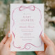 Baby Shower invitation featuring a watercolor pink bow and ribbon. Personalise with your information or click "Click to customise further" to edit font styles, size and colours.