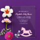 Pretty pink rocking horse with shades of pink and purple next to fun flowers