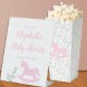 Pink Rocking Horse Girl Baby Shower Round Paper Coaster