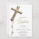 Pink Rosary Decorated Gold Cross Baptism Invitation