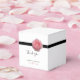 This design features an elegant pink rose flower. The floral pink rose combined with the elegant black ribbon image create a sophisticated simple border framing the text. The pink tones of the rose flower contrast against the black ribbon and wording creating a chic elegant style. Elegant wedding favour box design with modern elements. Matching wedding invitations and other stationery items are also available.