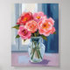 Pink Rose Bouquet Glass Vase Romantic Floral Poster