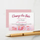 Unexpected date changes can happen. Send your understanding guests a change-the-date cards with pink and peach watercolor roses. Pink botanical design is versatile for any occasion.