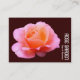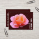 A business card template with a vertical text. Attractive rose on the front. Company name in rotated text on the front and back with all other contact details on the back. The photo or image on the front can also be changed. The design also allows scope for additional customisation.