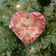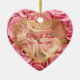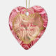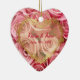 Gorgeous floral keepsake features pink roses with sheer gold heart background. Heart frames the deep pink text for this elegant Wedding keepsake ornament. Customise the name text and date areas.