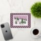 This card has a Victorian design in subtle pink, with a paisley background that looks like lace. “Christmas Blessings” is on the top in flowing script, and your name is on the bottom. The back has a faded image of the same Paisley design. This winter wonderland scene is from the Christmas Eve-Christmas Day collection, with a mauve background and frame. If you love the antique look, you’ll love this Victorian wintry scene. Blessings!