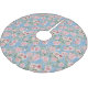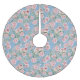 Elegant Christmas tree skirt with a pink floral rose pattern on a pretty pastel blue background.