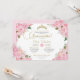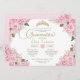 Pink Rose Floral Gold Tiara Quinceanera Invitation