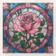 Pink Rose Flower Floral Stained Glass Art Coaster
