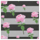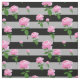 Pink Rose Flower On Grey Black Stripes Pattern Fabric