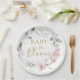 Pink Rose Foliage Baby Shower Paper Plate
