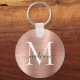 Pink Rose Gold Brushed Metal Girly Script Monogram Keychain