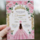 All text can be edited for any occasion. Pink roses, pink floral, elegant pink and gold quinceanera invitation, pink quince, pink floral birthday invitation.