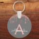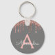 Pink Rose Gold Charcoal Grey Glitter Monogram Key Ring