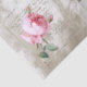 Pink roses on a gold frame with a letter in French script on a painted taupe background.