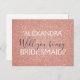 Blush Pink - Rose Gold and Navy Blue Faux Glitter and Sparkle Elegant Will You be my Bridesmaid? Postcard with personalised name.