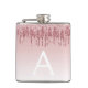 Blush Pink - Rose Gold modern ombre Faux dripping Glitter and Sparkle Elegant Luxury Monogram Flask. This Flask can be customised to include your initial and first name. The Pink Rose Gold Flask is perfect for a birthday or bachelorette party celebration.