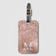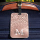 Pink Rose Gold Glitter Confetti Monogram Initial Luggage Tag