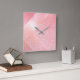 Pink Rose Gold Glitter Glass Grey Abstract Square Wall Clock