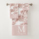 Pink & Rose Gold Glitter Roses Monogram Initial Bath Towel Set