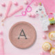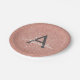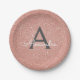Pink Rose Gold Glitter & Sparkle Monogram Birthday Paper Plate