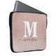 Pink Rose Gold Glitter Sparkle Monogram Script Laptop Sleeve