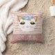 Pink rose gold kitty princess pillow. Pretty cat princess face in rose gold, blush pink and gold glitter, pink heart shaped nose and big golden glitter eye lashes, with a crown and pink and blue floral arrangement. Rose gold and white lines striped background with a pearl ribbon. Easily customise and add your name to personalise the pillow.