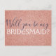 Blush Pink - Rose Gold and Navy Blue Faux Glitter and Sparkle Elegant Will You be my Bridesmaid? Postcard.
