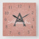 Pink - Rose Gold Sparkle Glitter Monogram Name Square Wall Clock