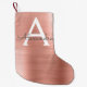 Pink Rose Gold Faux Stainless Steel Elegant Monogram Stocking. This Christmas Stocking can be customised to include your initial and first name.