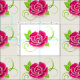 An outline of a lotus flower / water lily. Petals outlined in pink and the leaves outlined in green.